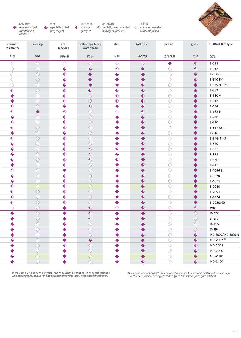 Keim-Additec的皮革行業(yè)用蠟乳液型號(hào)大全,為廣大客戶介紹了可以應(yīng)用于皮革行業(yè)的型號(hào)與效果。針對(duì)性應(yīng)用請(qǐng)查看其他頁面。