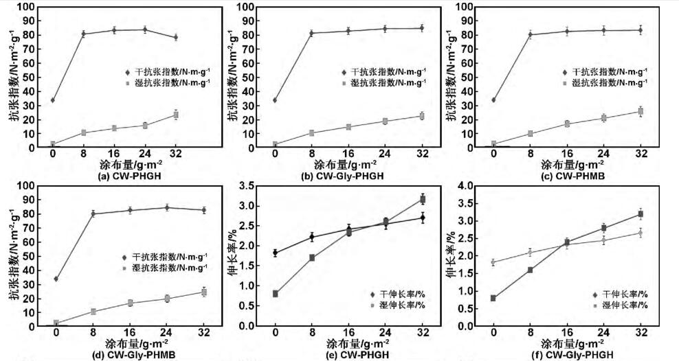 3.2.4涂布改性棕櫚蠟乳液后紙張的機械性能