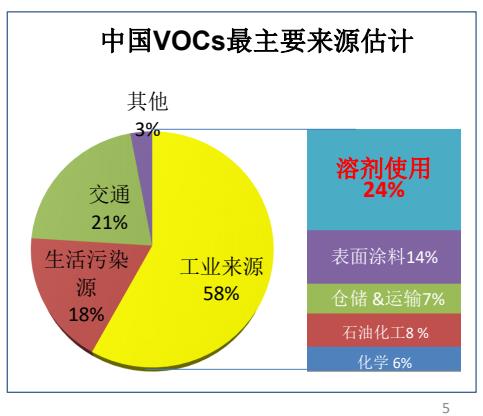 中國VOCs最主要來源估計,其中工業來源占比最大,而工業來源中VOC大部分來自溶劑。